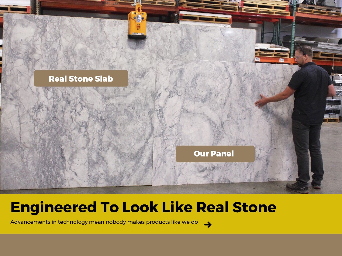 Crafted with a patented imaging process, our wall system is virtually indistinguishable from high-end granite, marble, and other natural stones. And we provide them at a fraction of the maintenance and cost as those materials.